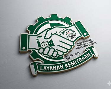 OEM / Private Label: Kami memberikan layanan produksi bagi Anda yang ingin memiliki merk sendiri.